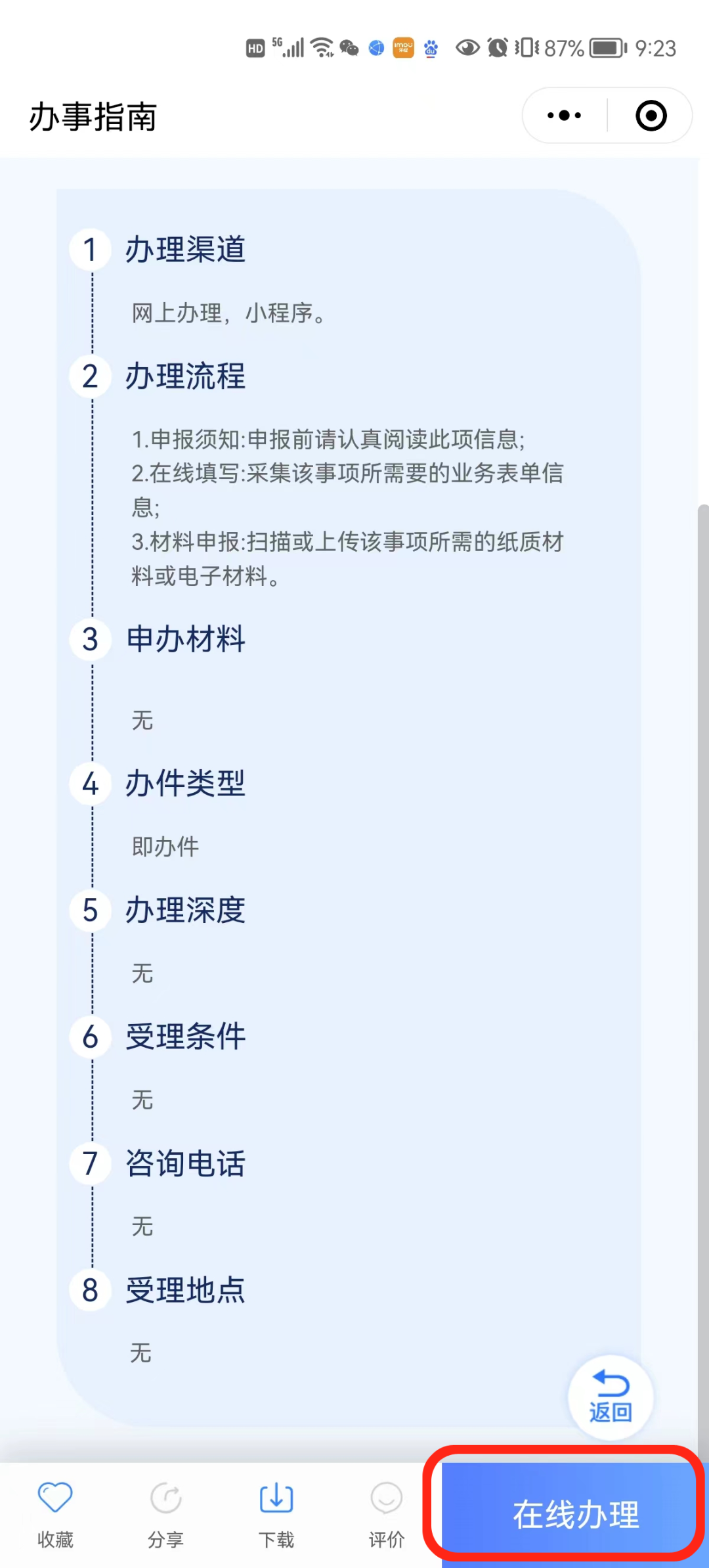 2、点击“普通门诊统筹签约修改”,进入后右下角点击“在线办理”。
