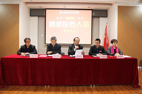 1月14日下午,东营博爱妇产科医院2019年第四季度“最美医务人员”表彰大会暨颁发徽章仪式顺利结束,出席活动的有党支部书记牛国昌、业务副院长张学升、院长助理卓福强、护理部主任陈桂华、医务科主任徐锋。评选出“最美医生”、“最美护士”、“最美检验师”、“最美药剂师”、“最美康复师”共19位医务人员,牛国昌书记宣布了获得2019年四季度“最美医务人员”徽章的名单,名单如下: