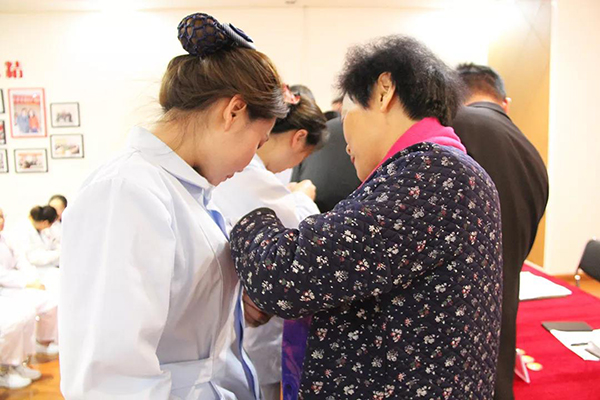 牛书记,张院长等院领导亲自为获得第四季度的最美医务人员佩戴徽章,并向获奖的各位医务人员表示祝贺。